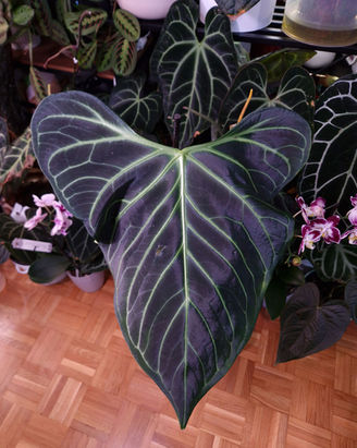 Ma passion se concentre dans les anthuriums et la culture des anthuriums. Tous les seedlings que vous trouvez sur le site sont mes propres hybrides, ma fierté et ma joie. La première étape consiste à sélectionner soigneusement les plantes mères. J'attache une importance particulière à leurs caractéristiques spécifiques. Il s'agit principalement d'une couleur de feuille très foncée, d'un reflet bleu, de veines rougeâtres et de nouvelles feuilles teintées de rouge. La forme des feuilles et la facilité d’entretien jouent également un rôle essentiel.